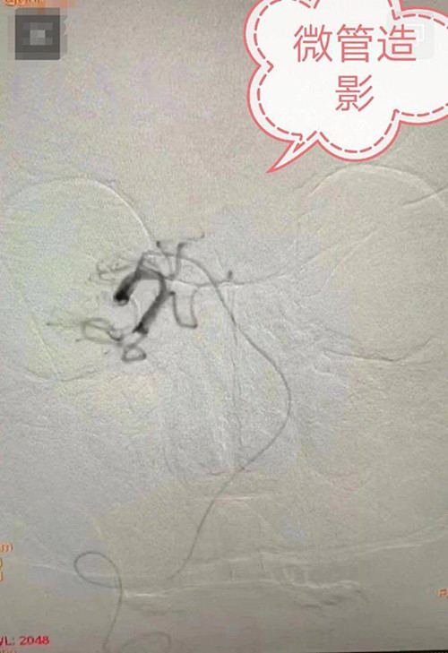 患者症状为眩晕、恶心、呕吐,查体意识水平下降,言语不清,左眼不能内收,双眼水平持续眼震,复视,右侧肢体力弱。结合既往有房颤病史,医生考虑为后循环栓塞可能性大,因栓塞患者溶栓效果差,建议直接血管内取栓治疗。医生向家属交代病情,家属同意取栓。紧张有序的介入手术治疗立即进行,10分钟术前准备,20分钟造影完成。造影结果显示基底动脉中远段完全闭塞,微导丝导管辅助小心通过闭塞段,微导管造影证实为真腔及闭塞长度,随后交换取栓导管,选择适合的取栓支架取栓。
